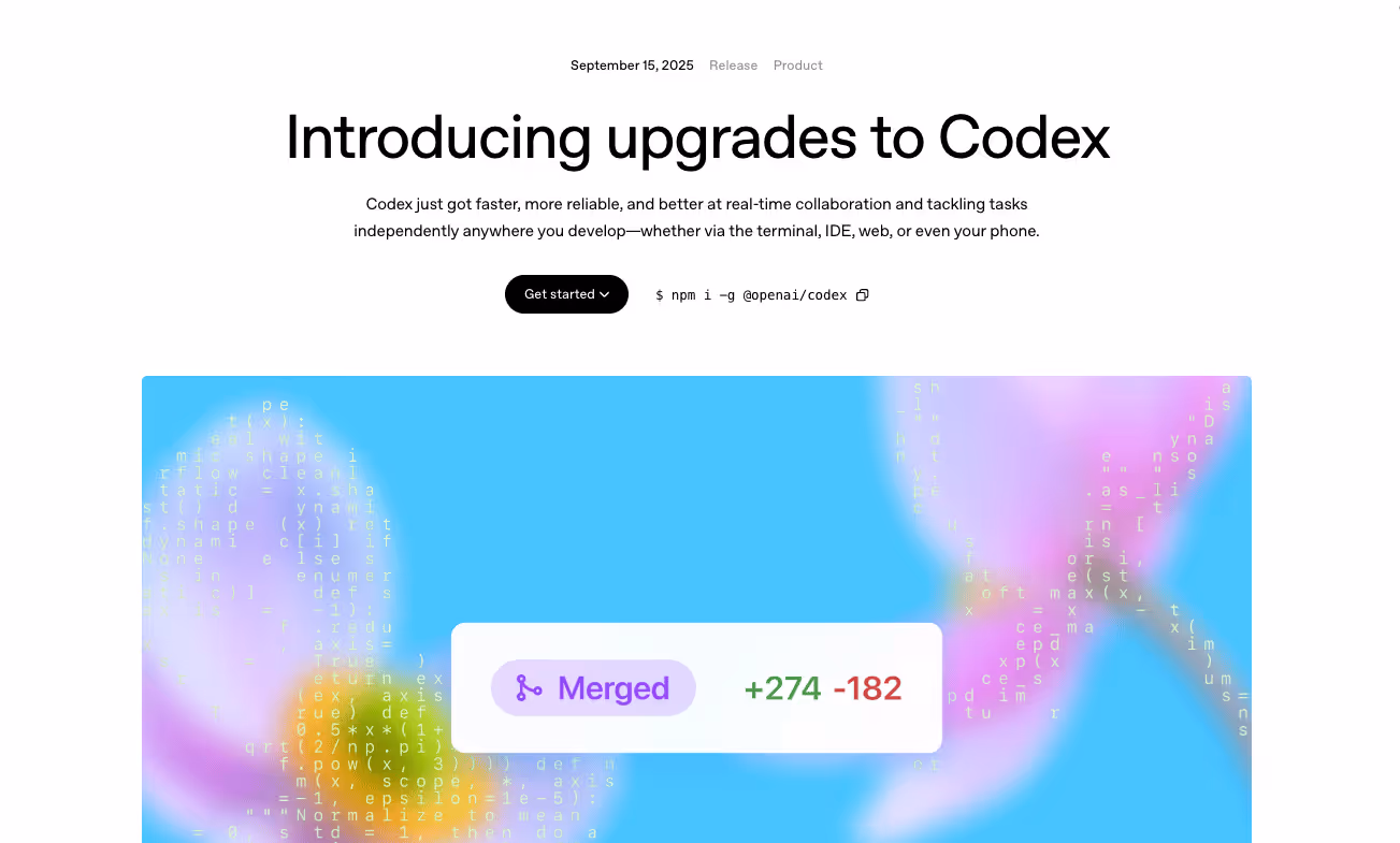 17 Sep 2025- OpenAI launches GPT-5 Codex, a coding agent that autonomously works for hours with faster throughput and automated reviews. Usage grew 10x; companies like Duolingo and Cisco Meraki deploy it.