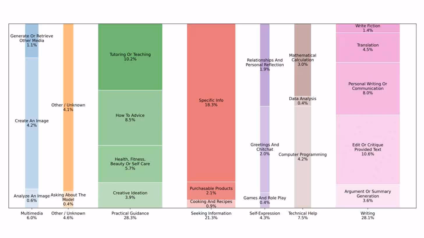 17 Sep 2025- OpenAI and Anthropic usage reports show Claude users focus on coding, ChatGPT on writing and advice, rising personal use (53%→73%) and rapid growth in low/middle‑income countries, and increasing information‑seeking/task delegation.